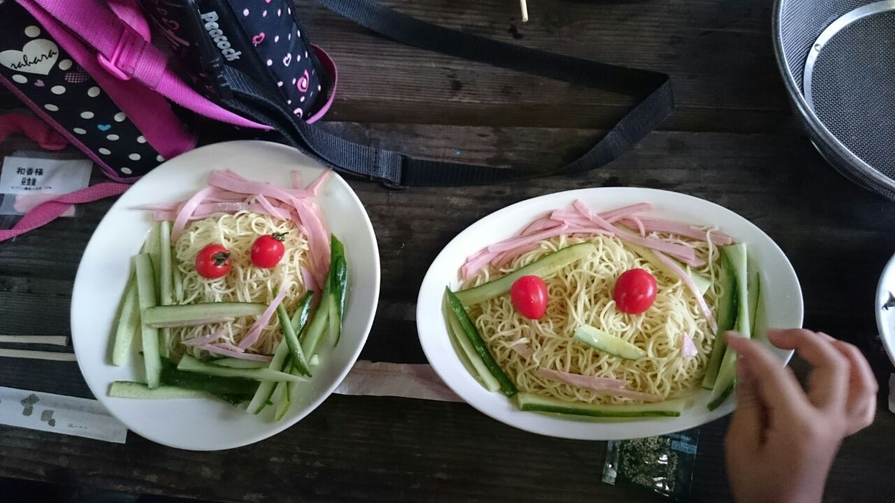 冷やし中華のハム、キューリ、トマトを盛り付けて美味しくいただきました。
