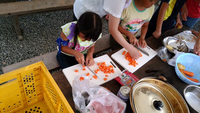 火おこし、具材切り、食器洗いなど、子どもたちはそれぞれの役割をこなして、どのグループも美味しいカレーが出来ました。