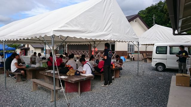 テントはりの間にスタッフが集合し、昼からの脱出ゲームのそれぞれの役割の打ち合わせをしました。