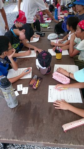 朝早くからボランティアで参加してくださってる各社会教育団体の皆さんのスタッフミーティング、そのあと子どもたちも集まりだし、開所式でキャンプスタート!