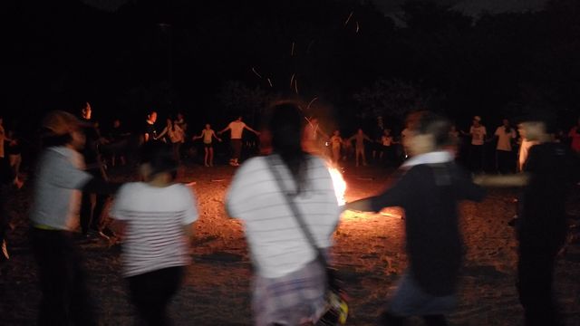 片付けが終わると、いよいよメインイベントのキャンプファイヤーです。