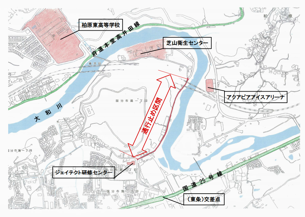 柏原市内の道路、橋の通行止め