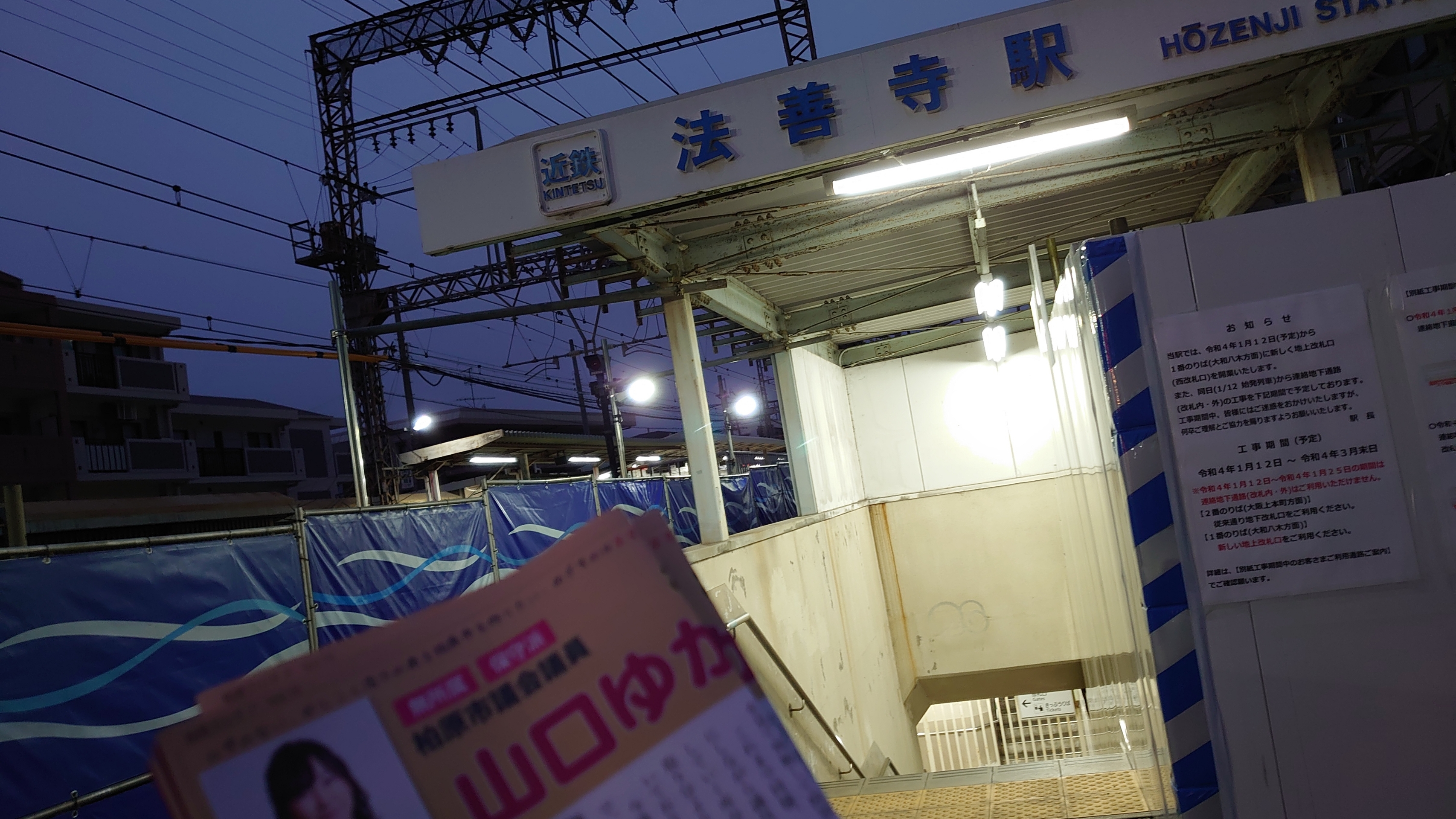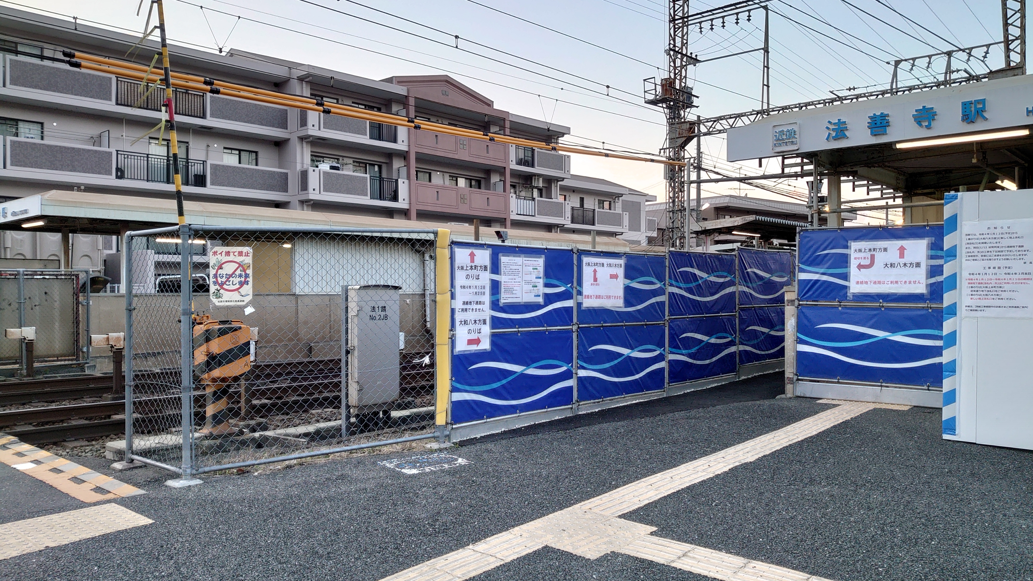 法善寺駅と堅下駅がバリアフリー工事をしており、今年の秋ごろまでかかる予定です。