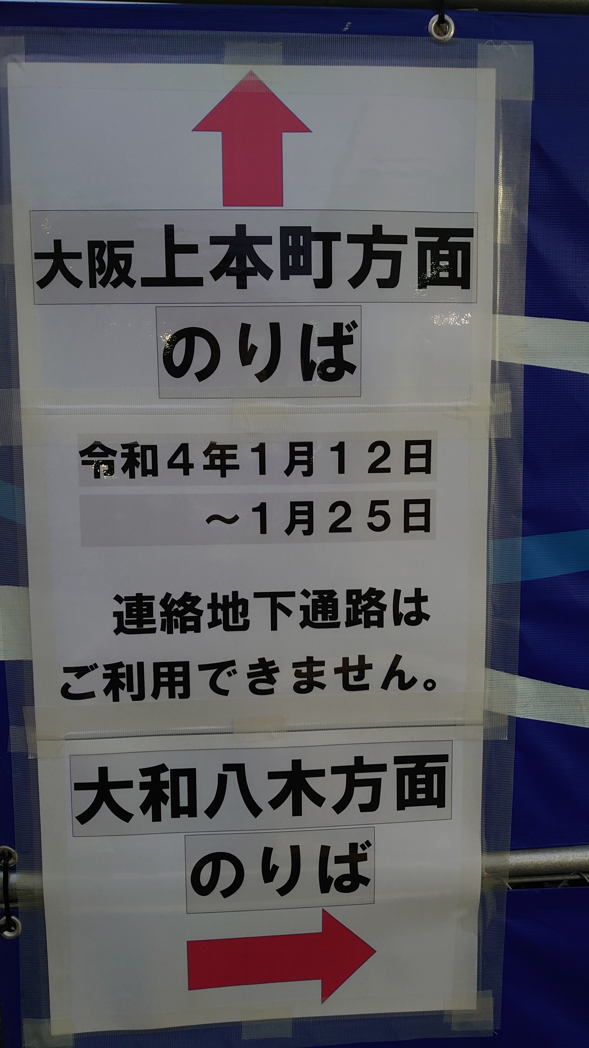 26日以降は、地下通路は使えますが、改札は大阪上本町行きのみとなります。