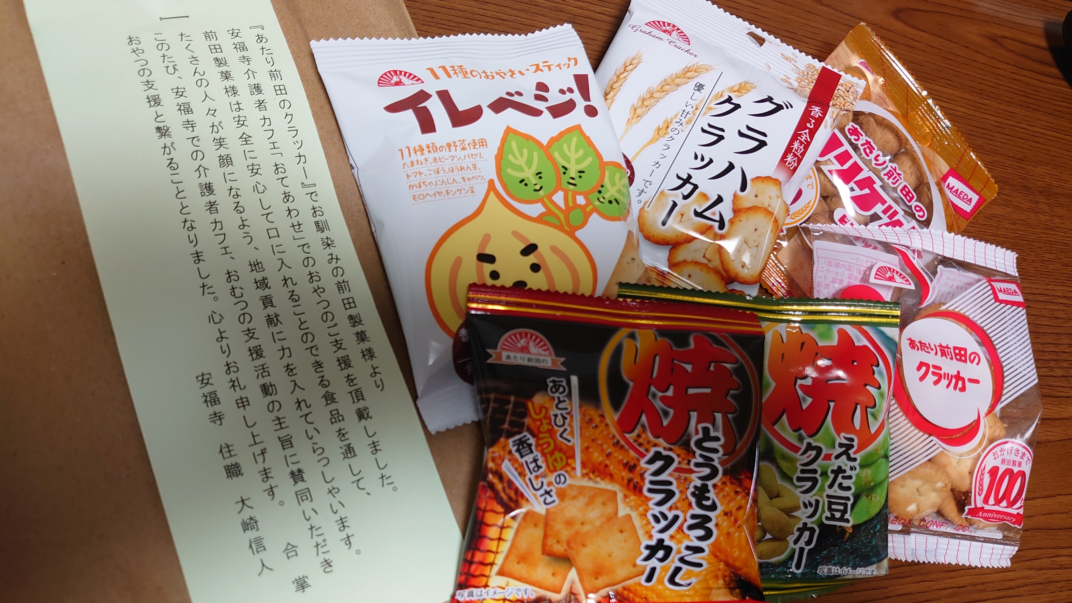 前田製菓さんが介護者カフェに賛同され、沢山のおやつの支援をしてくださっていました。