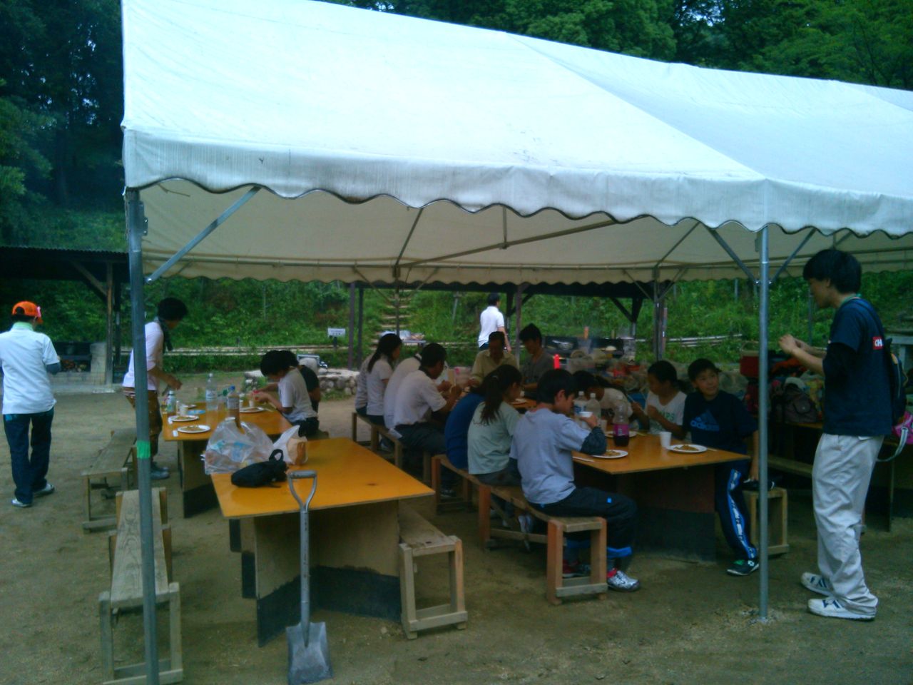 お昼ご飯を作り、クラフト作りまでで小学生たちは帰り、中学生以上はテントをはり、夕食を作りました。